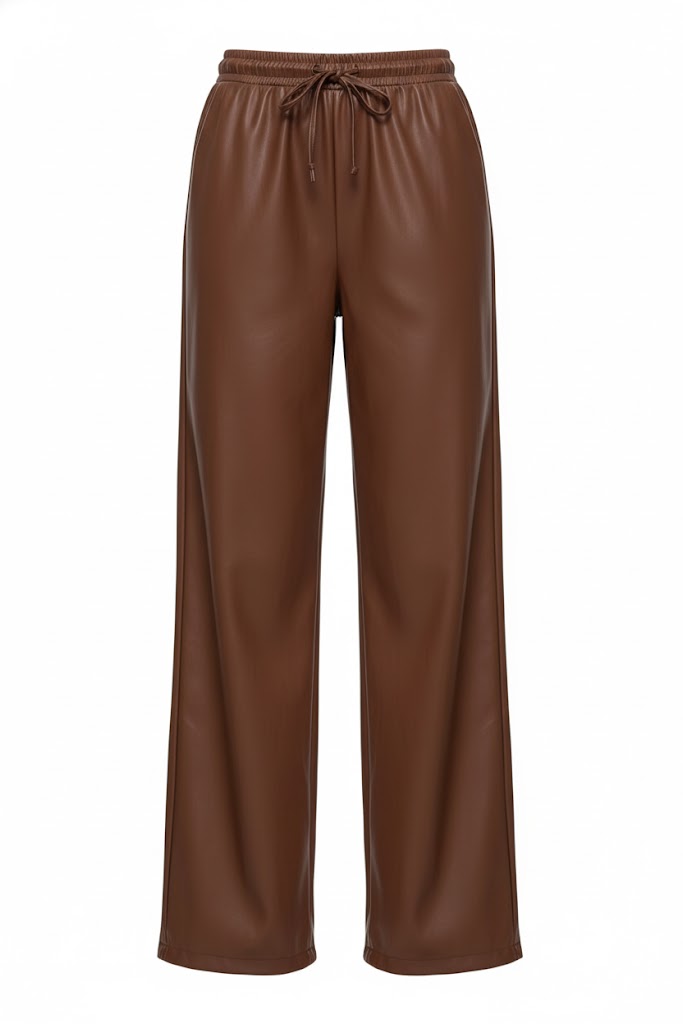 Cognac Pants, taba rengin sıcak tonlarını modern deri dokusuyla buluşturuyor. İç kısmının kadifesi, bol paça formu, güçlü bir siluet yaratırken yüksek bel kesimiyle zarif bir duruş sunar. Swan kadını için: cesur, fark edilir, kusursuz.