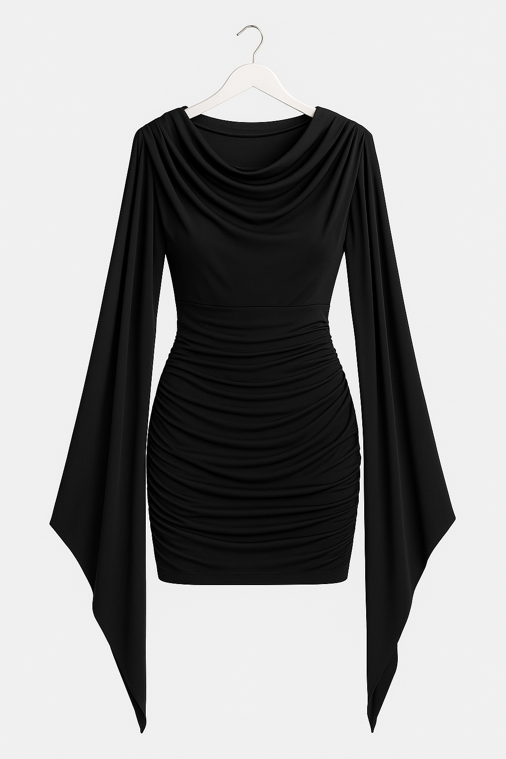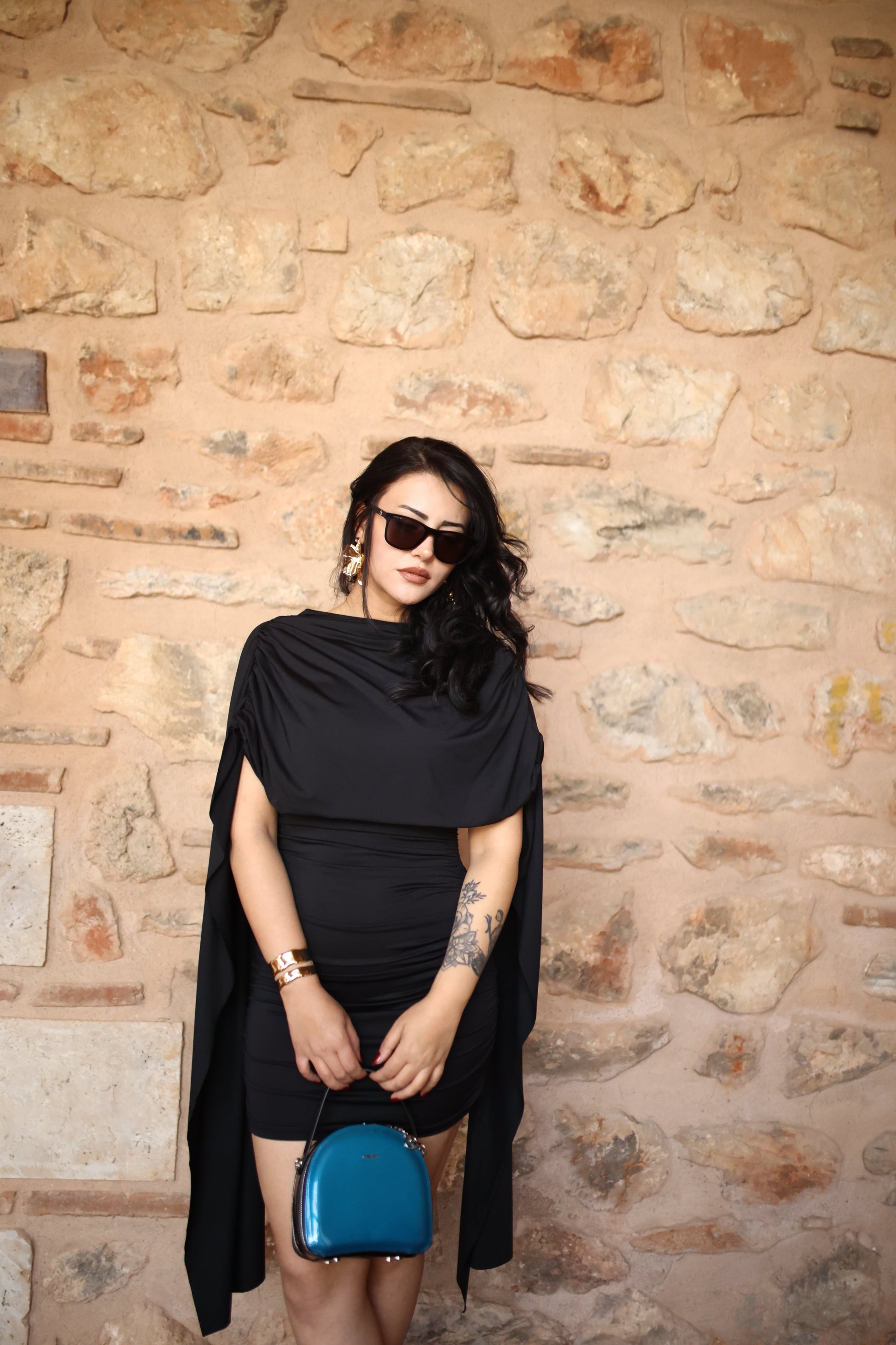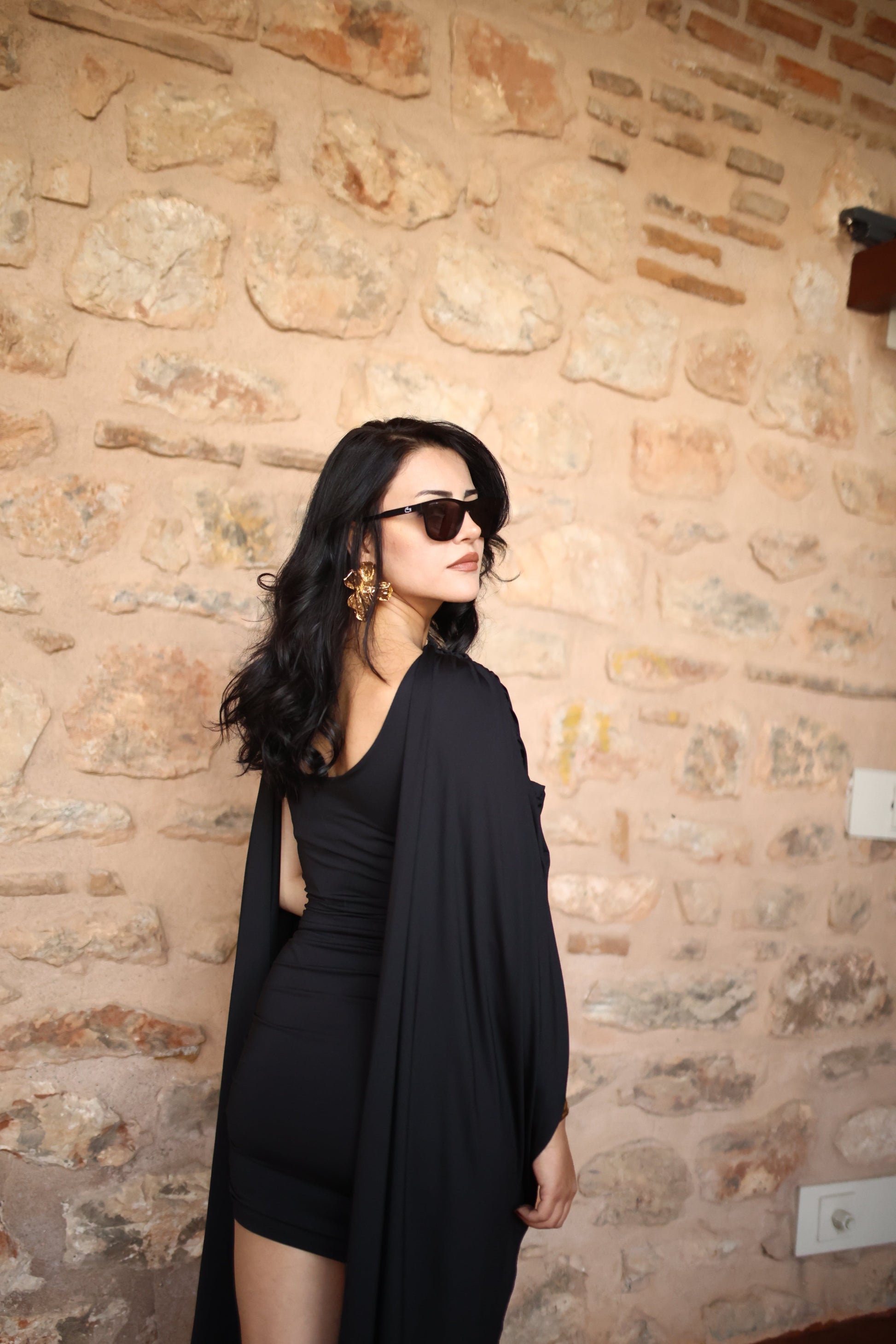 Zarafeti yeniden tanımlayan Eclipse elbise, vücudu saran drapeli formu ve şal detaylı uzun kollarıyla etkileyici bir siluet sunar. Akışkan kumaşı ve geceye yakışan derin siyah tonuyla güçlü ve gizemli bir duruş sergiler. Işığı emen dokusuyla dikkat çekerken, omuzlardan süzülen şal efekti elbiseye dramatik bir zarafet katar. Swan kadınına yakışır, iddialı ve unutulmaz bir parça.