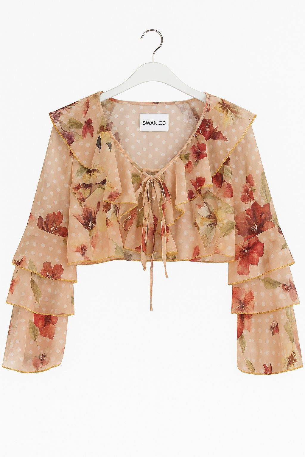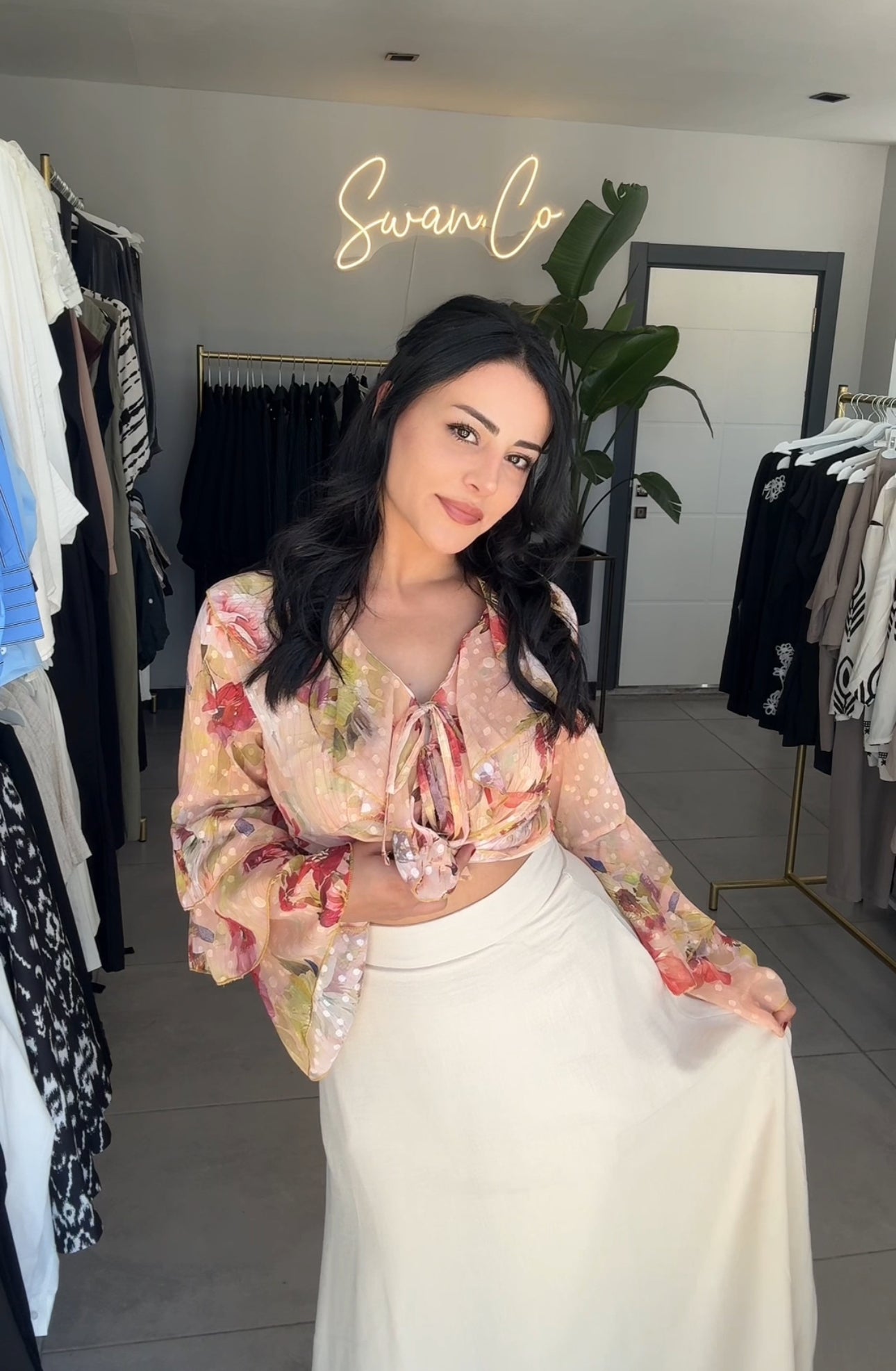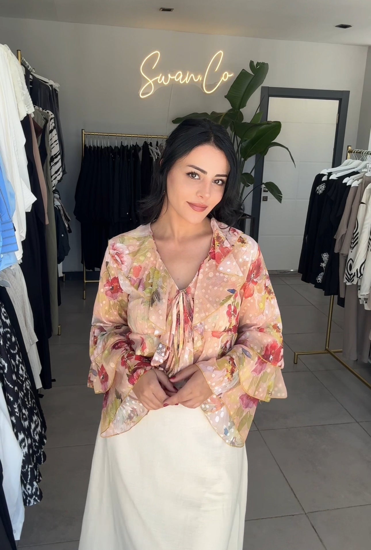 Vintage zarafetiyle göz alan Garden Whispers, fırfırlı kolları ve çiçek desenli transparan dokusuyla masalsı bir görünüm sunuyor. Noktalı tül üzerine yerleşen pastel çiçekler, ilkbaharın naif havasını modern stilinle buluşturuyor. Yüksek bel pantolonlar, jean’ler ya da eteklerle kombinlenerek her anı romantikleştirecek bu bluz, Swan.co’nun duygusal ama iddialı kadınına hitap ediyor.